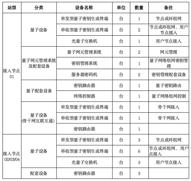 备注:表格中设备数量配置为建议参考值,卖方提供的设备须满足合肥量子城域网4个接入节点成环组网、用户接入及接入骨干网需求,并具备运维管理和冗余备份要求。
