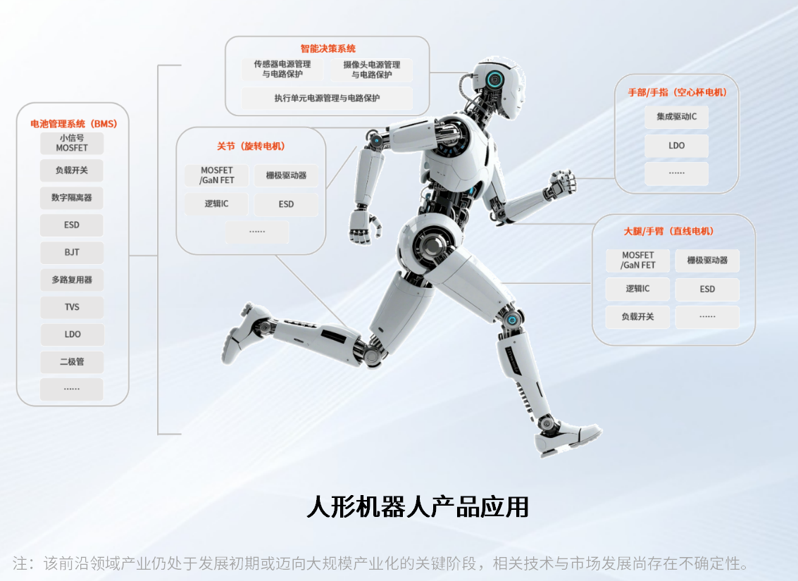 而在人形机器人这一新蓝海市场,安世也暗藏先机。随着AI能力爆发,机器人正从工业、商业场景向更广泛领域渗透,通用型人形机器人有望成为下一个爆发点。作为机器人高效安全运行的动力核心,功率与模拟半导体在核心模块中不可或缺。凭借在工业机器人、协作机器人领域积累的深厚客户资源,叠加车规级产品自带的高可靠性、高安全标准,安世有望在人形机器人赛道抢占先机,进一步拓宽增长边界。