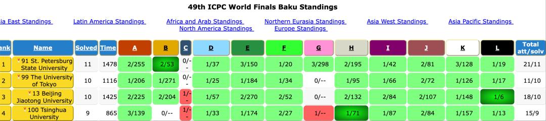 最终139支队伍中获得金牌的为前四名,分别为圣彼得堡国立大学、东京大学、北京交通大学、清华大学,解出题目最多的是圣彼得堡国立大学,共11道。