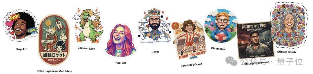 无需输入任何提示词,贴画风格也是直接点选,可以选择的一共有九种。