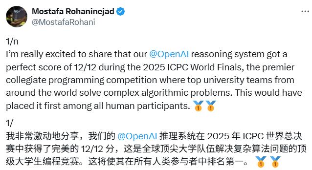 IMO 之后,OpenAI 与 Gemini 双双加冕 ICPC 2025 金牌。
