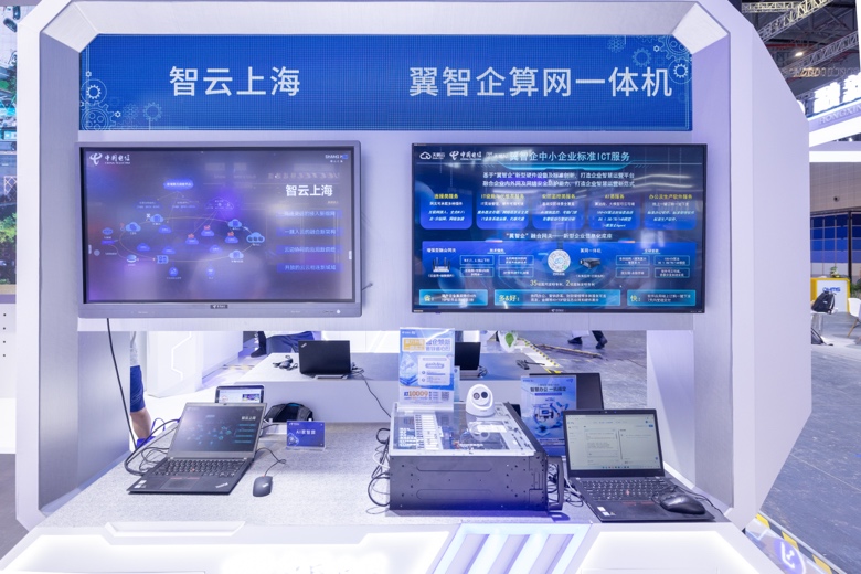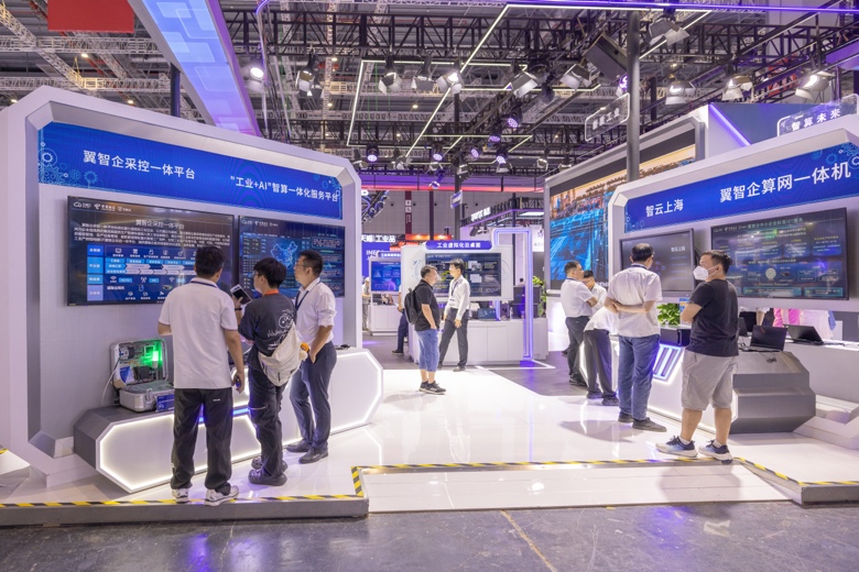 开幕式上,“长三角重点产业数智公共服务平台”正式揭牌,中国电信以智能算力注入关键力量。中国电信上海公司总经理龚勃出席开幕式并点亮“算力设施平台”。展馆内,中国电信围绕“云赋新质 智惠未来”主题,通过三大展区、11大展项,全景呈现其在云网融合、人工智能、算力调度、安全防护等领域的创新实力,展现了以科技创新推动工业数字化转型、赋能经济社会发展的全新路径。
