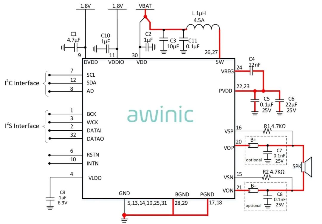 音频功放:自带BOOST升压数字音频功放,内置DSP