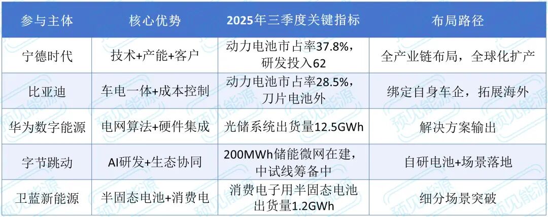 字节跳动的入局,让本就竞争激烈的锂电市场进入“多极化博弈”阶段——传统电池巨头、互联网同行、新兴初创企业,正基于自身优势展开差异化竞争。