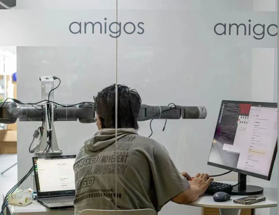 阿米奥机器人的首款产品为轮式双臂机器人AmigosBot,具备14个自由度、±1mm 操作精度和5kg负载能力,适应3C及汽车电子零配件作业。公司已与华南智能硬件制造企业迪比科能源达成深度合作,为其东南亚和美洲工厂提供柔性产线解决方案。