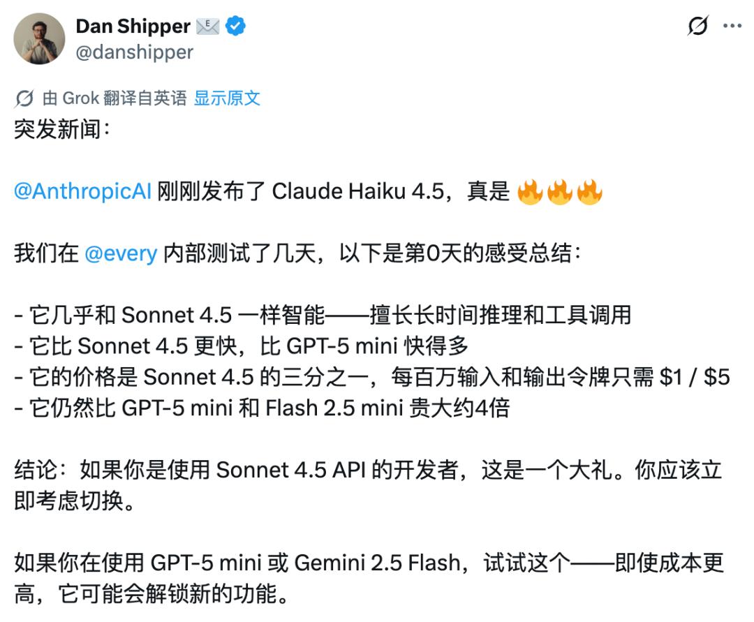 就在刚刚,Anthropic 发布了 Claude Haiku 4.5。