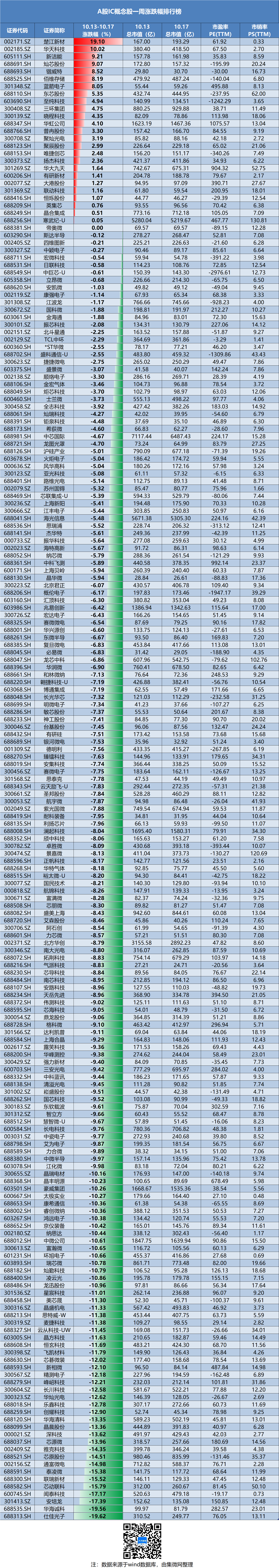 在跌幅方面,截至周五收盘,173家下跌,跌幅前五的是仕佳光子(-19.62%)、华海诚科(-19.56%)、安培龙(-17.39%)、闻泰科技(-17.17%)和芯动联科(-15.79%)。
