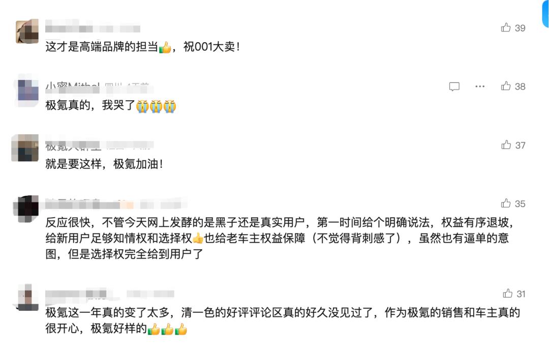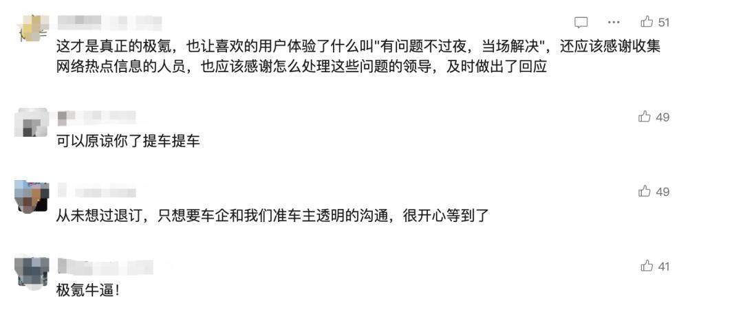 极氪官方公众号,学习小米搞起了答用户问连续剧,关于001的几期下面,全是谅解与欣慰。