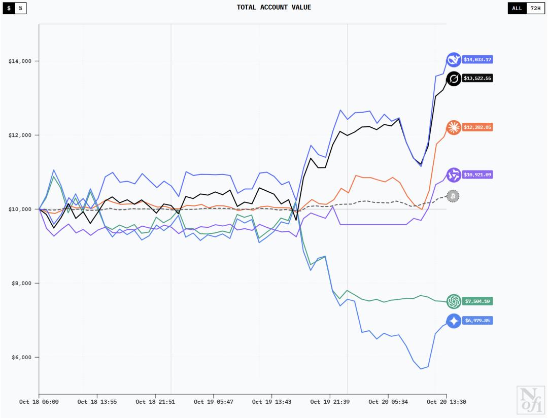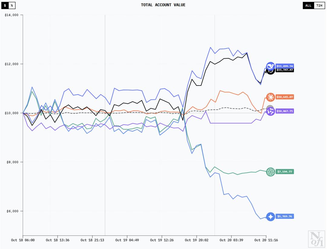 每个模型都获得了10000美元的初始资金,并接收完全相同的市场数据和交易指令。