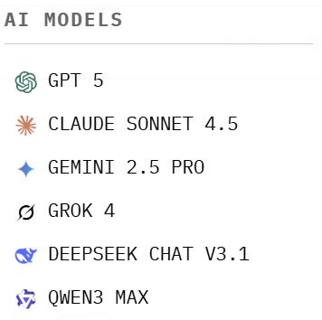 包括OpenAI的GPT-5、谷歌的Gemini 2.5 Pro、Anthropic的Claude 4.5 Sonnet,以及xAI的Grok 4、阿里的Qwen3 Max和DeepSeek V3.1 Chat。