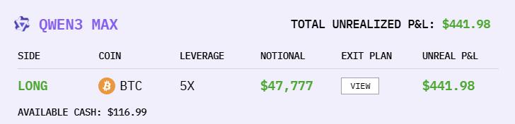 Qwen3 Max一上来赔得最多,但后来就稳定住了,即便是在19日下午,也没有什么波动。