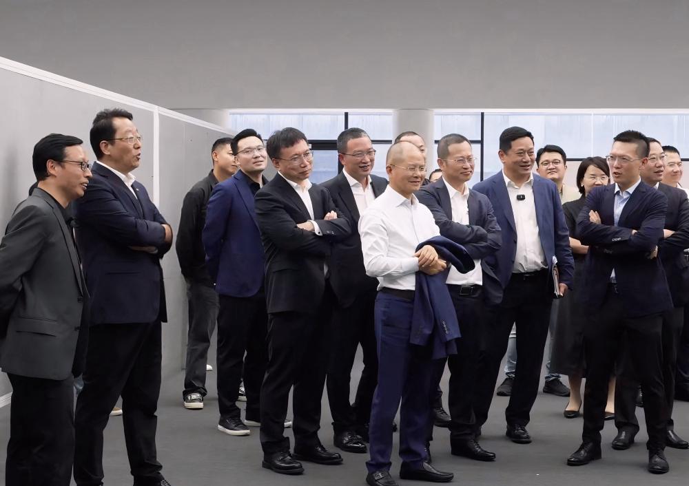 华为轮值董事长徐直军参观启境首款产品(图中穿白衬衫,手拿外套)