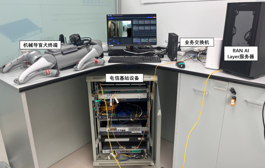 在面向未来6G通感智算融合的技术验证中,中国电信研究院首创的云网融合“小脑”——RAN AI Layer,通过对内生算力资源的灵活调度,实现了在网络边缘对AI推理的实时响应,为机械导盲犬提供了精确的导航、避障和多模态交互服务。基于RAN AI Layer,AI-Native RAN在网络侧实现了对通信、算力、感知和 AI 业务的统一纳管、一体化调度以及能力供给,同时有效构建了通感智算融合的端到端试验平台。该试验成功验证了面向6G无线网络内生智能的AI-Native RAN技术体系在当前5G系统中支撑新型AI类业务的可行性,并为未来此类应用的现网落地提供参考。