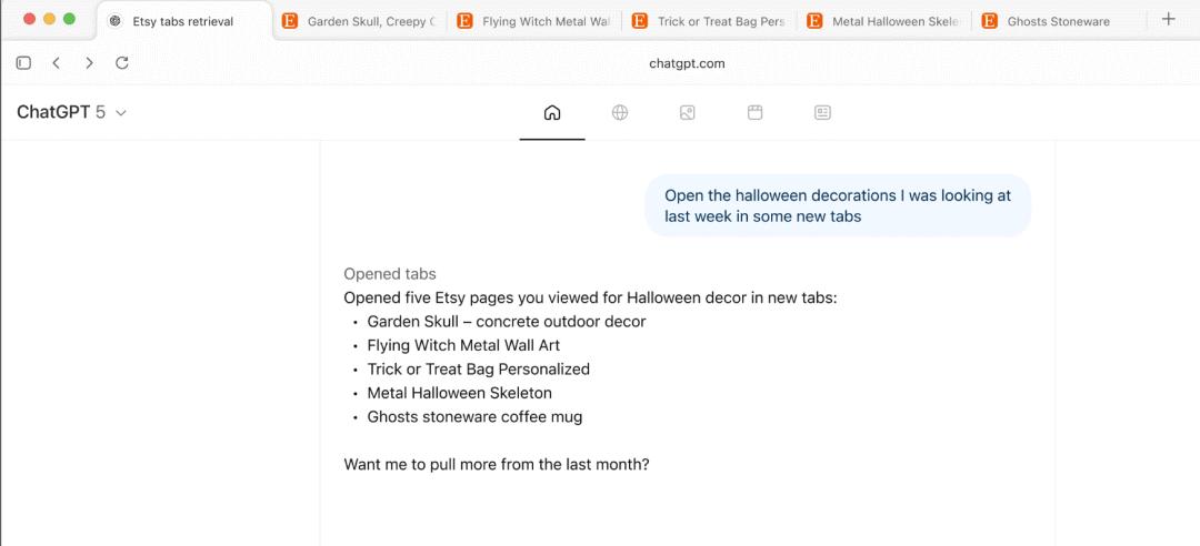 普通浏览器的历史记录,只是一串冰冷的 URL;但 Atlas 的 “浏览器记忆”,是 ChatGPT 能读懂的 “上下文库”。你可以问它:“把上周看的所有招聘信息整理成行业趋势表,帮我准备面试”—— 它会自动关联你浏览过的职位页面,不用你手动筛选。