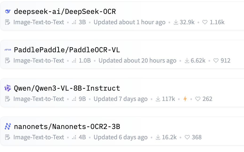 截至10月22日,抱抱脸上最受欢迎的前四个模型,全部都支持OCR。