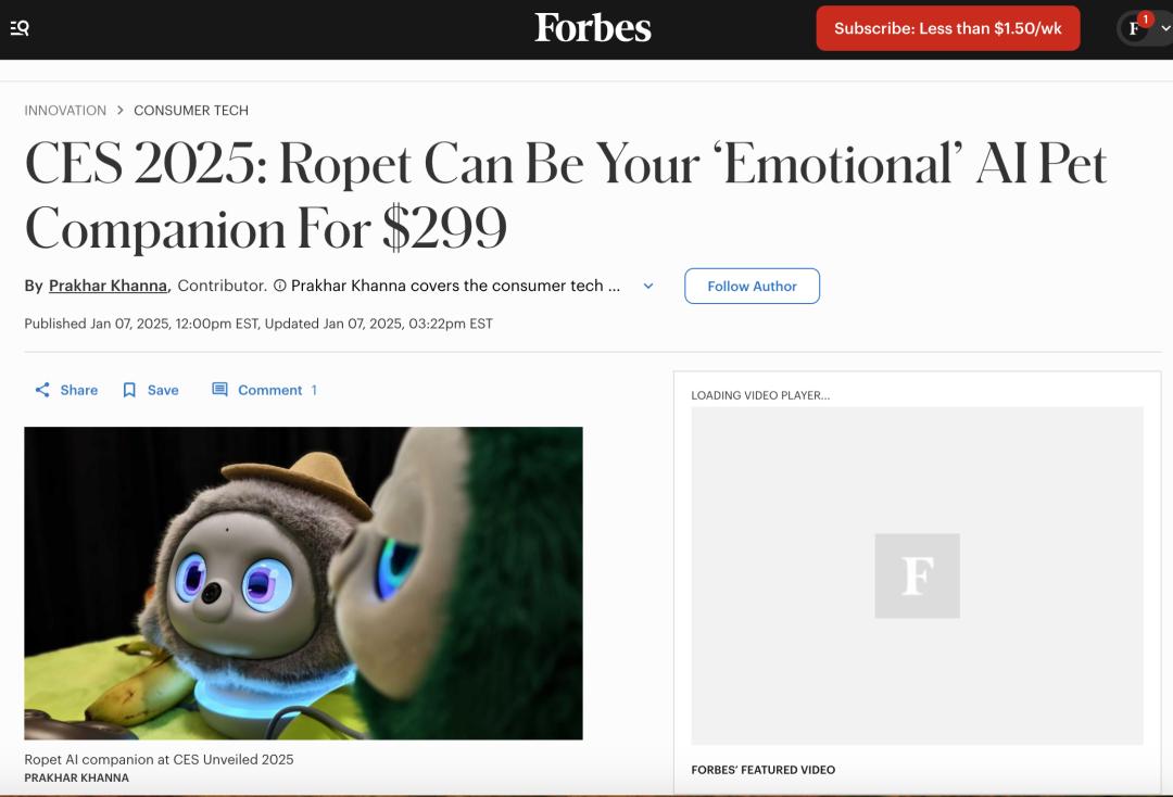 不少记者来采访我,那一周我几乎没睡过觉。结果Forbes对我们的专访一出,产品迅速走红。在展会的六七天内,Ropet在全球传播量达到60亿次,一定程度上带火了中国AI陪伴机器人赛道。