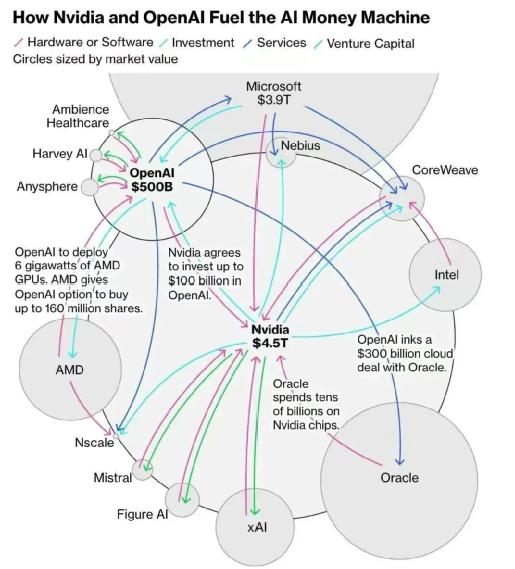 图注:OpenAI、甲骨文与英伟达的资本循环。