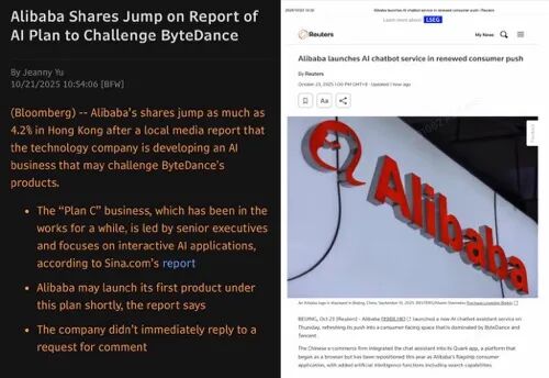 先是前几天,彭博社说阿里股价又涨了,这次全赖有个挑战字节跳动的C计划。