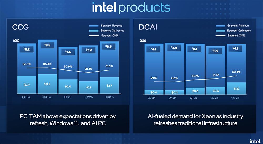 2025年第一季度,英特尔进行了组织架构调整,将网络与边缘计算事业部(NEX)整合至客户端计算事业部(CCG)和数据中心与人工智能事业部(DCAI)。