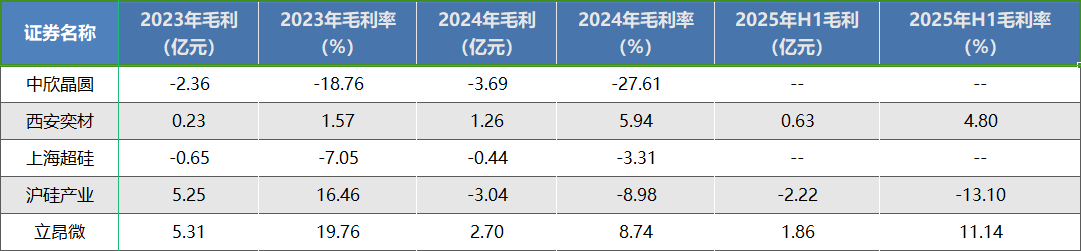 在毛利率上,中欣晶圆2023年与2024年分别为-18.76%与-27.61%,与西安奕材、立昂微等企业亦存在一定差距。反映出中欣晶圆的市场定价能力与盈利能力的不足。