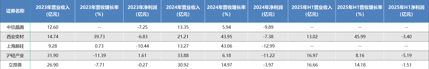 中欣晶圆曾于2022年申请科创板上市未果。同为半导体硅片领域企业的奕斯伟材料(西安奕材)则成功登陆科创板。上海超硅也在申请科创板上市。沪硅产业、立昂微均是目前A股上市企业中与硅片相关的主要企业。对比几家企业的财报数据,可以更清晰地界定中欣晶圆在产业格局中的位置。