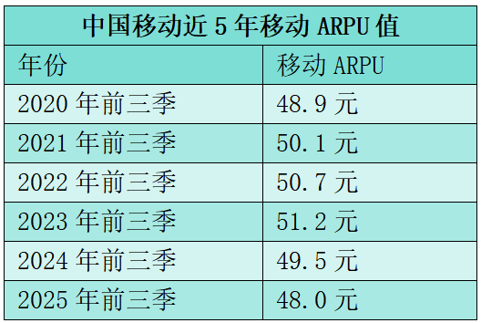 从上表可以看出,5G商用前几年对移动ARPU起到了一定的拉动作用,并在2023年达到顶峰。随着5G红利逐步消退,移动ARPU开始走低,今年前三季较去年同期下降1.5元。按照10亿用户计,相当于月收入减少15亿元,前三季共减少135亿元,而这正是利润的来源。