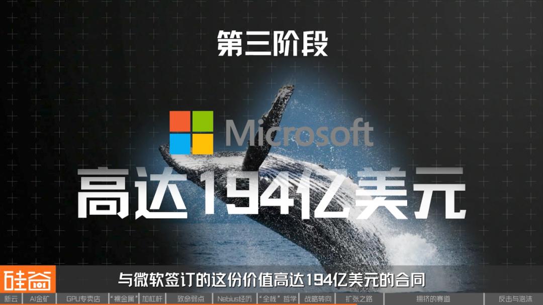 而到了现在的第三阶段,Nebius开始猎取行业巨鲸。与微软签订的这份价值高达194亿美元的合同,则戏剧性地开启了Nebius的新篇章。这不仅是其有史以来获得的最大订单,更是一个强烈的信号:Nebius正式加入了这场“巨鲸游戏”,它正以自己的节奏,在这场高风险的云端战争中步步为营地往前走。