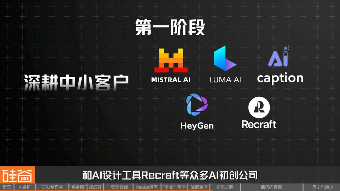 在第一阶段,Nebius主要是深耕中小客户,最初的客户包括了后来成为欧洲AI巨头的Mistral AI,以及Luma、Caption、HeyGen和AI设计工具Recraft等众多AI初创公司。Nebius提供的灵活短期合同(3-12个月),与云巨头的长期锁定,以及CoreWeave为大客户服务而设置的高门槛,形成了鲜明对比。其全栈软件平台和更低的成本,对于那些技术团队规模不大、预算有限,但又急需高效AI基础设施的初创公司来说极具吸引力。