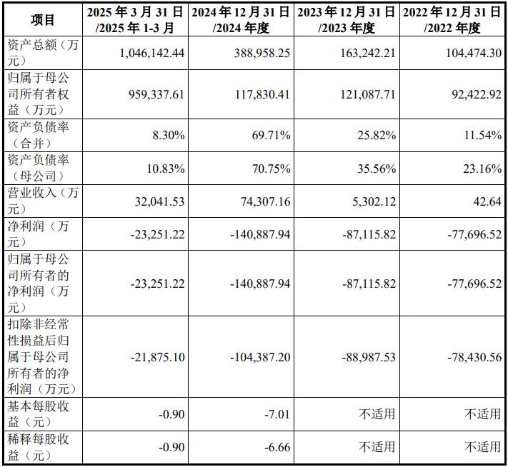 但需要注意的是,沐曦成立至今尚未盈利。招股书披露,2022至2024年、2025年1至3月,营业收入分别为42.64万元、5302.12万元、7.4亿元和3.2亿元,归母净利润分别为-7.8亿元、-8.7亿元、-14亿元和-2.3亿元。根据沐曦预计,公司达到盈亏平衡点的预期时间最早为 2026 年。