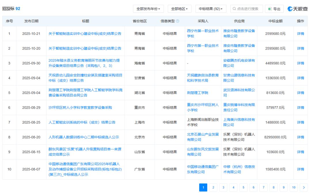 股东“赏单”之外,天眼查显示,2025年以来,乐聚中标订单的采购对象多为学校。不仅仅是乐聚,像优必选、宇树、智元等一批人形机器人企业现下的采购主力,同样也多是学校。对此,业内质疑:“去掉卖给学校的、租给表演的、金主爸爸赏的以及给政府的,企业真正卖出去的机器人又有几台?”
