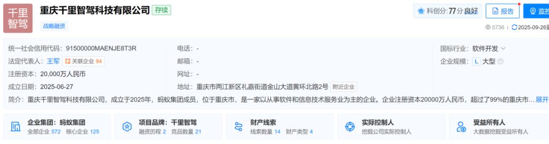 早在2025年6月,吉利、旷视(通过迈驰智行)以及其他主体,共同成立了重庆千里智驾,其中千里科技出资15亿,占股30%。法人代表是王军,也就是原华为车BU总裁,同时王军还是千里科技联席总裁,此前这些人事变动已经被视为吉利智能驾驶行业格局调整的重要信号。