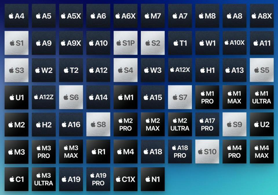 苹果自研芯片矩阵,数据更新至2025年9月