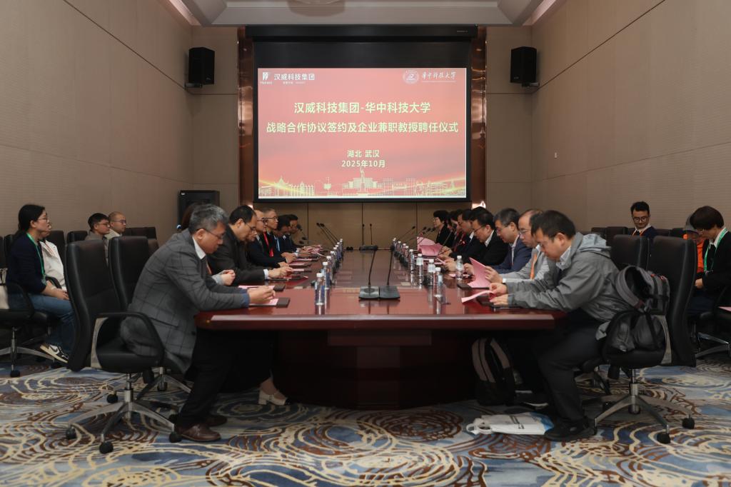 签约仪式上,高亮为任红军颁发华中科技大学企业兼职教授聘书。汉威科技集团相关部门及子公司负责人;我校集成电路学院、机械科学与工程学院、光学与电子信息学院等传感器领域的专家学者参加活动。