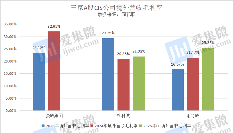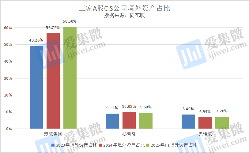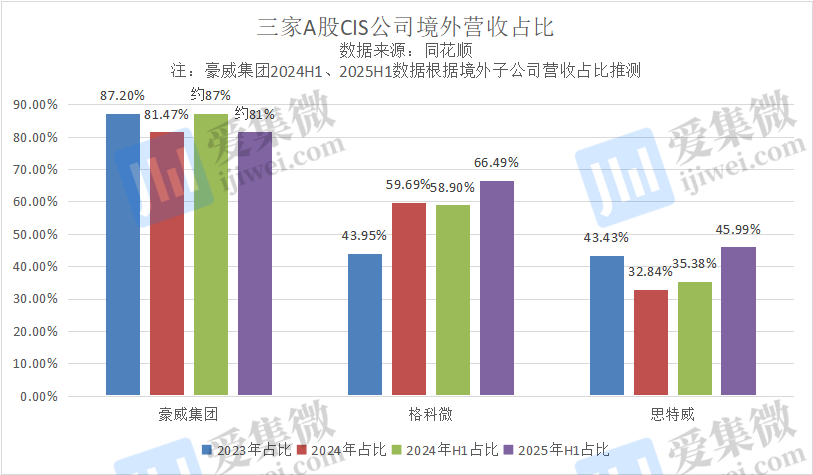 思特威与格科微的境外资产占比相对较低,2025年上半年分别为7.26%和9.6%,业务仍以境内为基地,外销主要通过跨境销售实现。