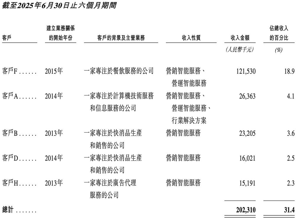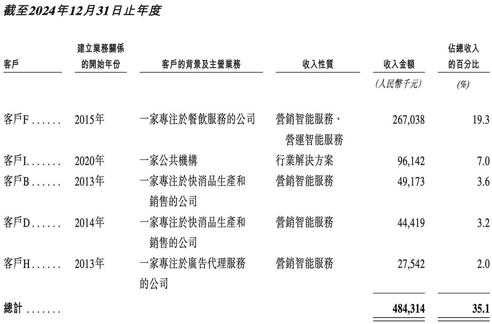截至2024年末,明略科技的客户总数为1841名。截至2025年6月30日,该公司已为135家财富世界500强企业提供服务,客户遍及零售、消费品、食品及饮料、汽车、3C、化妆品、母婴用品等行业。