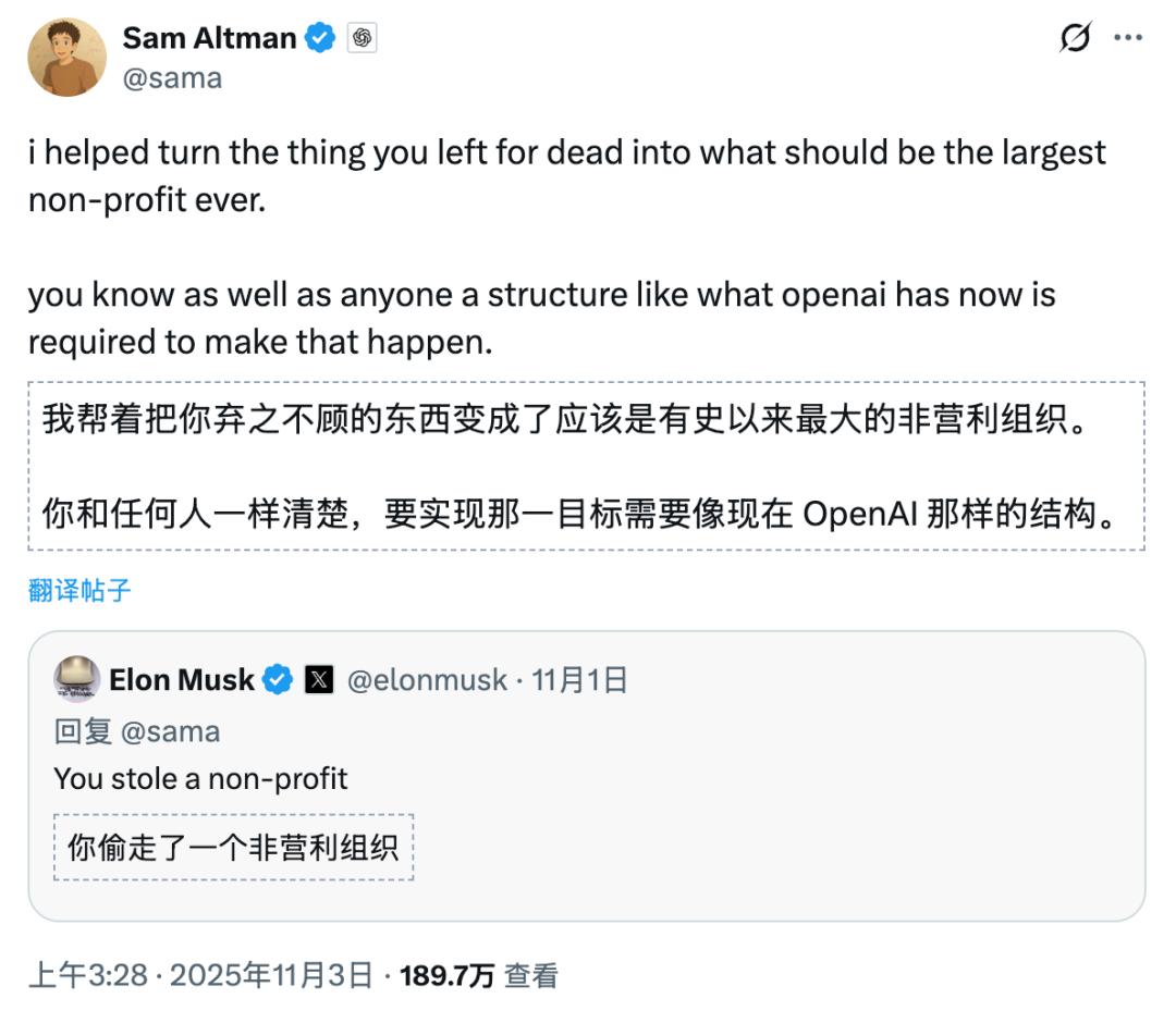 虽然11月3日,奥特曼转发了马斯克的消息,似乎想要服软,并搞好关系。