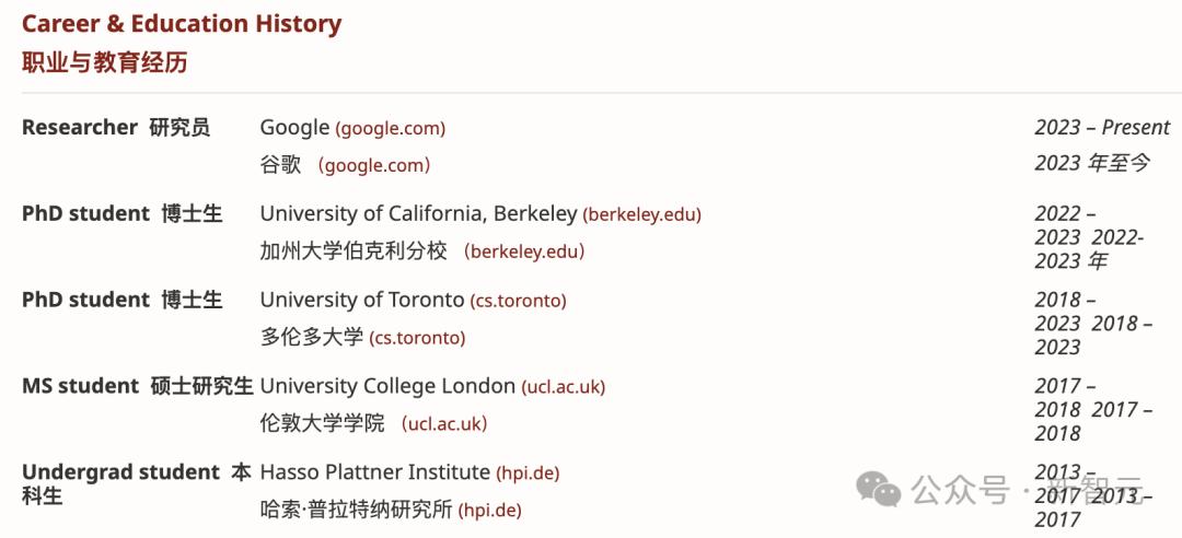 Danijar在谷歌的早期经历,多是以研究员的身份参与谷歌研究院、DeepMind、Brain Team等团队的工作。