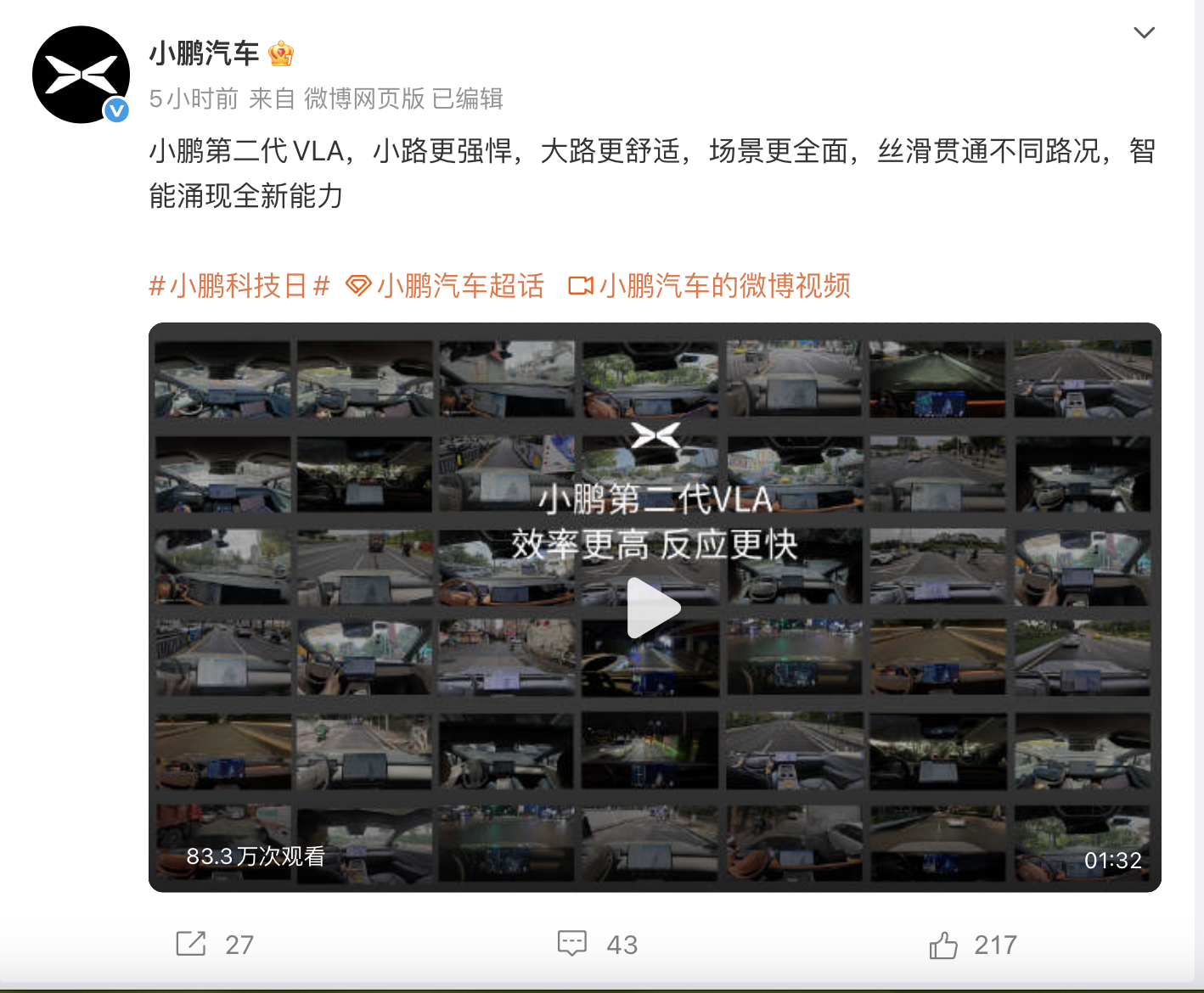 稍早前,小鹏汽车宣布,小鹏第二代VLA大模型将在今日小鹏科技日上登场。根据官方介绍,小鹏第二代VLA效率更高、反应更快,并做到“小路更强悍,大路更舒适,场景更全面,丝滑贯通不同路况”,号称小路之王。预告图上也提到,第二代VLA哪里都能开、宽窄都能过、昼夜都好用,可以轻松通过复杂路口,还实现了城市道路的少顿挫、无误刹、零推背。