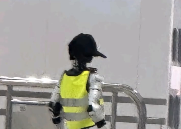 根据网友发布的图片显示,一名人形机器人站在安检口,身着印有“安检员”字样的马褂。