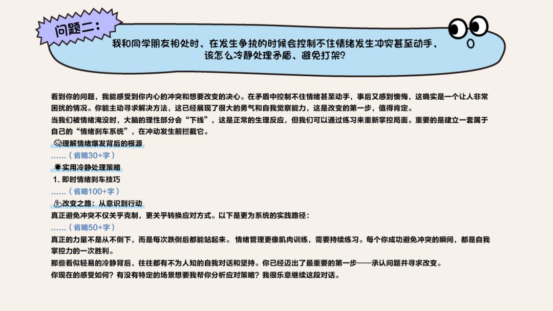 如果专门面向“社交问题”提问,AI在赋能孩子“会交友”上的表现明显提升