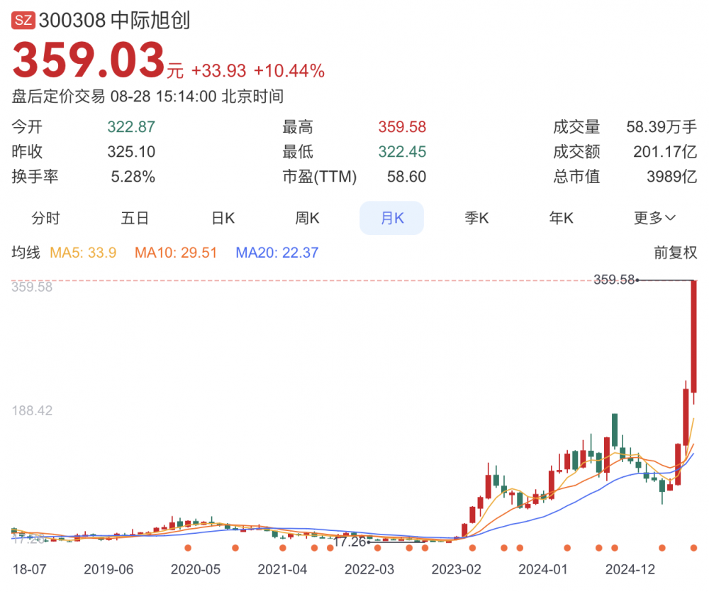 C114讯 8月28日消息(南山)光模块三剑客“易中天”,作为行业代表,迎来了巅峰时刻。