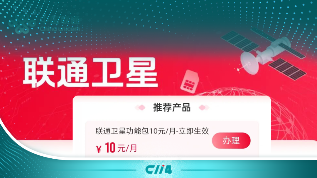 联通卫星业务上线!10元/月,8省(市)用户可尝鲜