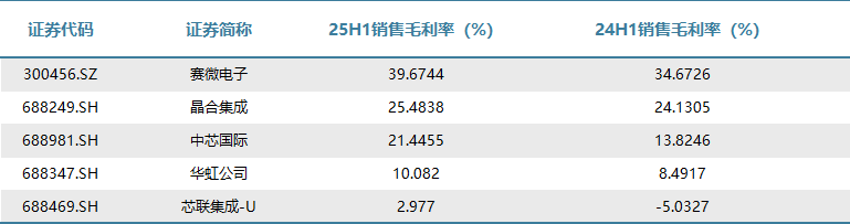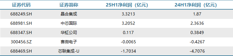 2025年上半年与2024年上半年的净利润对比,可看出晶圆代工企业利润表现分化明显。