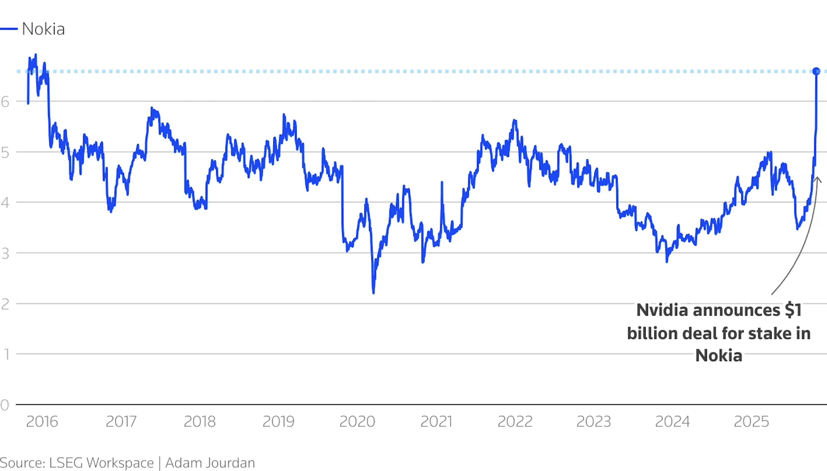 合作消息一出,诺基亚股价应声大涨 23%,创近十年来新高。