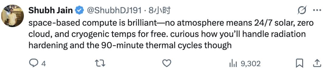 网友表示,在太空部署算力的想法真的很酷。