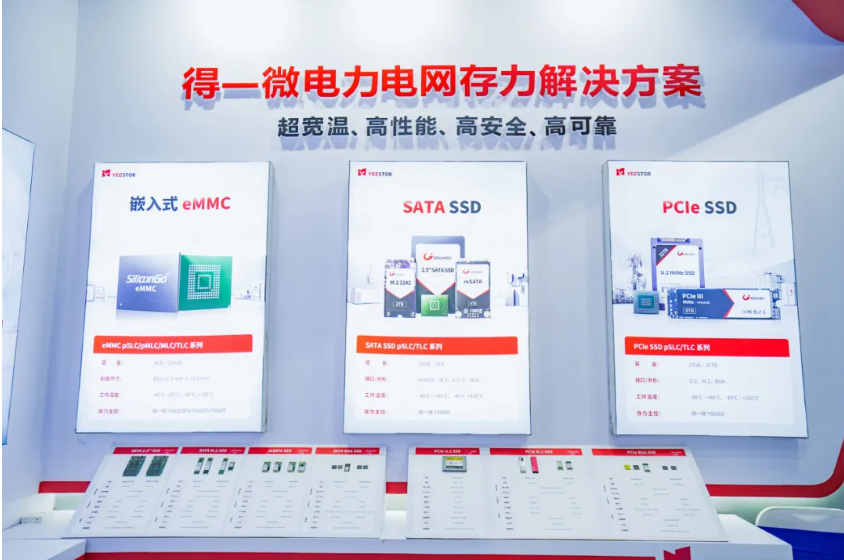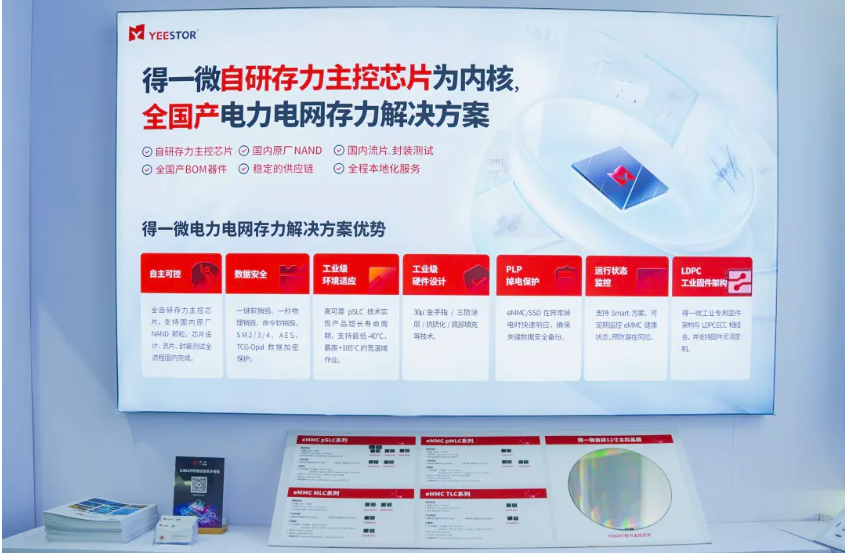 得一微电子(YEESTOR)作为国内领先的AI存力芯片设计企业,在展会现场展示了多款面向电力电网领域的高可靠、工业级宽温存力解决方案,覆盖电力行业的“发电、输电、变电、配电、用电”全环节应用场景。从智能电表的精准计量,到调度数据中心的智能决策,得一微以全系自主研发、全链国产化的综合能力,为构建安全、高效、智能的现代电网系统筑牢数据存力根基。
