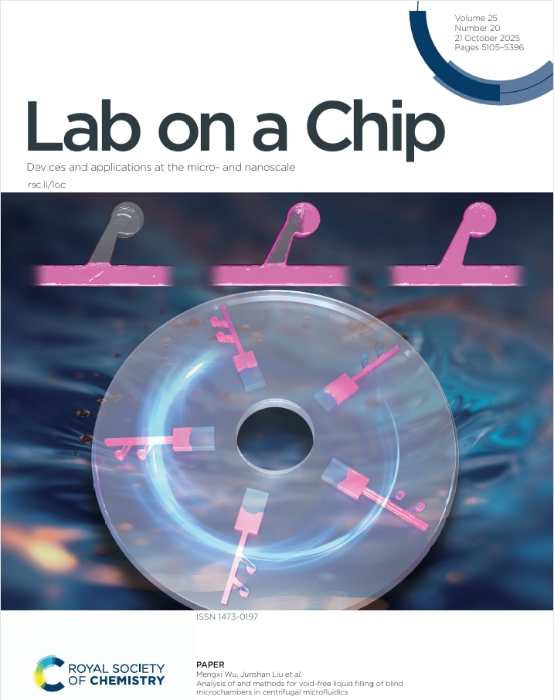 近日,国际知名期刊《芯片实验室》(Lab on a Chip)以封面文章刊发了大连理工大学机械工程学院刘军山研究员和吴梦希教授团队关于微流控芯片的最新研究成果“Analysis of and methods for void-free liquid filling of blind microchambers in centrifugal microfluidics”。