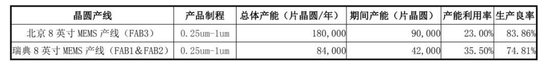 赛微电子MEMS 产线的基本情况(来源:赛微电子财报)