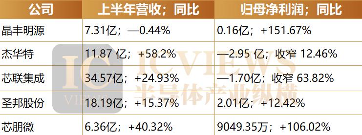 芯联集成上半年主营业务收入达34.57亿元,与去年同期相比增长了24.93%;归属母公司所有者的净利润亏损幅度同比收窄63.82%,其中二季度归母净利润为0.12亿元,首次实现单季度盈利;毛利率为3.54%,同比提升了7.79个百分点。
