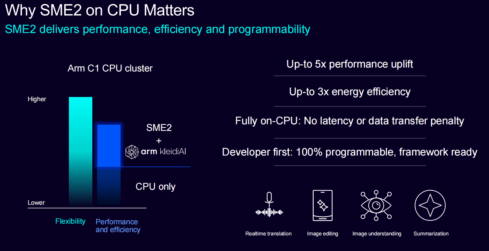 在Arm 看来,SME2是非常适合目前移动设备的需求。